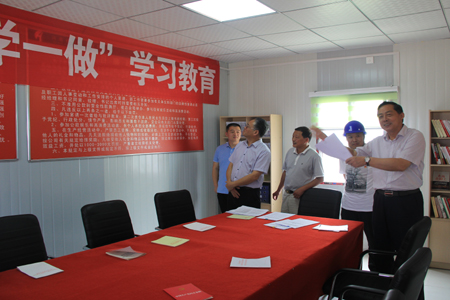 在周驿段,刘院生同志及陪同人员一行走访周南高速周驿段TJ-3B工区梁场、跨京港澳高速互通区,查看周南高速周驿段TJ-4A工区职工食堂及生活区情况,并为一线职工送去亲切慰问和关怀,并对周南高速周驿段TJ-4项目党支部“两学一做”学习教育及基层党建工作开展情况进行了检查指导。