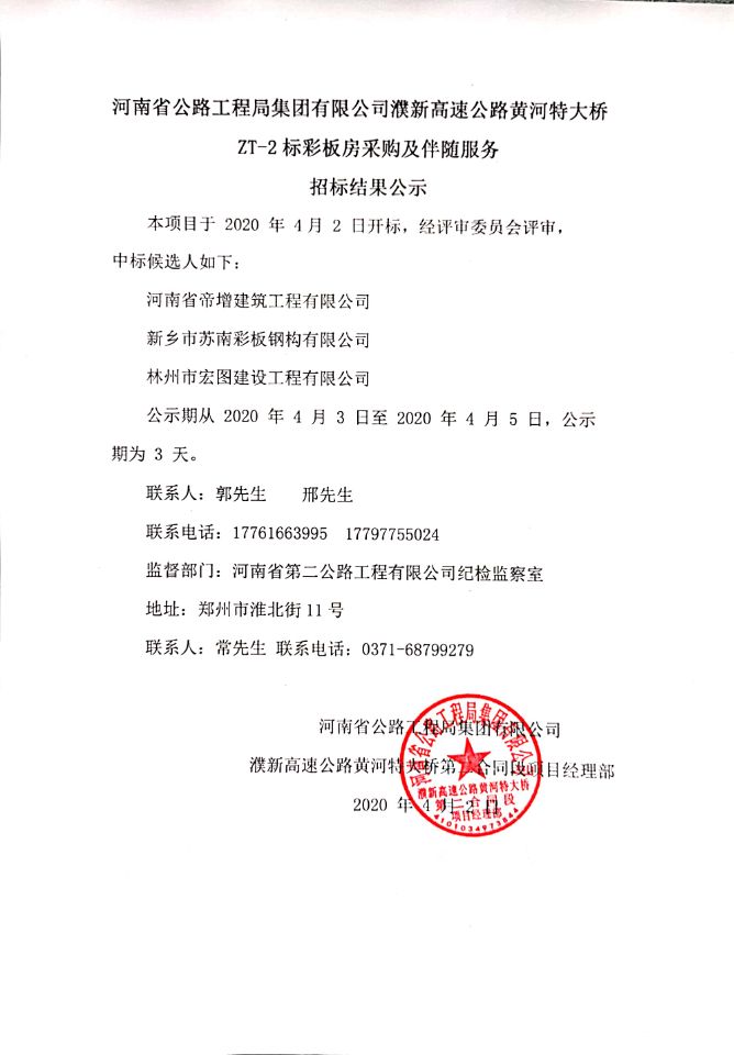 招标结果公示