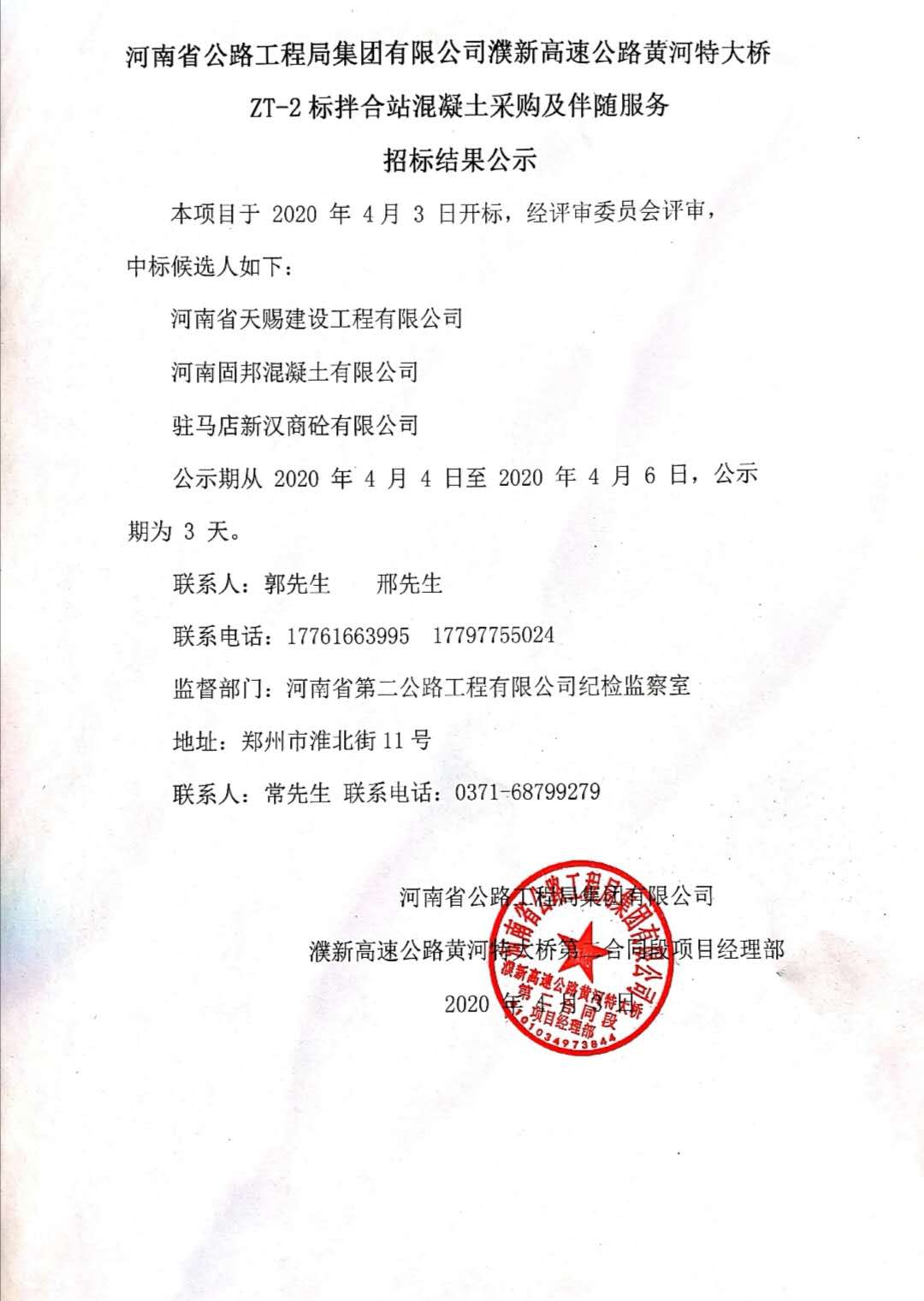 招标结果公示