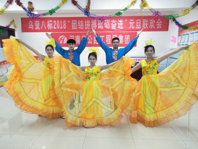 新疆乌奎八标:举办河南省公路工程局MK(中国)乌奎八标“团结拼搏砥砺奋进”元旦联欢会,项目部各部门、各工区、试验室、拌合站自编自演了舞蹈、相声、小品、演讲、三句半等节目,具有浓郁民族特色的维族舞蹈《麦西来甫》、激情洋溢的舞蹈《为祖国干杯》、项目年轻人根据自身成长经历编写的相声《试验室的那些事》、反映征地拆迁工作实际的小品《征迁》、反映项目安全生产工作的演讲《安全在我心中》、安全生产三句半等节目,寓教于乐,通过项目员工质朴的表演,激发正能量,增强凝聚力。(一公司)