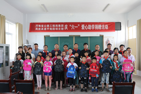 6月1日,一公司工会联合周南高速平宛段项目部组织捐赠代表,来到方城县券桥镇第一中心小学,给孩子送来节日祝福和礼物。