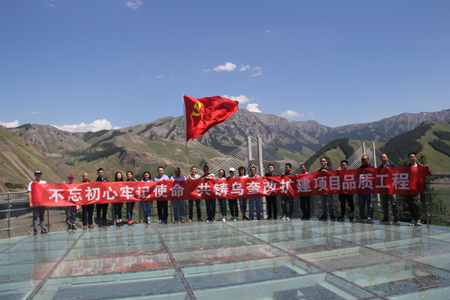 新疆乌奎八标:开展“党旗映天山”党日活动,组织党员和积极分子到伊犁果子沟大桥参观学习。果子沟大桥是新疆第一座斜拉桥、第一高桥,也是国内第一座公路双塔双索面钢桁梁斜拉桥。参观果子沟大桥建设历程,建设者克服气候条件恶劣、有效施工期短、施工场地狭窄等重重困难、历时四年艰苦卓绝的奋斗精神和采用“新技术、新结构、新工艺、新设备”、“以最小限度破坏、最大限度的恢复”的环保理念,使参观的党员同志们深受教育和鼓舞。在果子沟大桥旁边,党员同志们高举党旗、举起右手、重温入党誓词,铮铮的誓言表达了党员同志们的坚强决心,以十九大精神为指引,不忘初心牢记使命,搞好乌奎项目建设,向党和人民交一份满意的答卷。