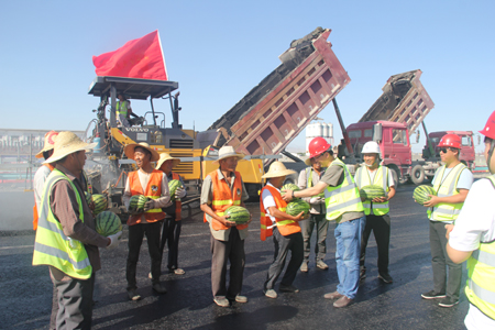为完成交通建设局提出提前通车目标任务,乌奎八标全体参建人员大干苦干100天、争分夺秒抢工期。在炎热的高温天气施工极易发生中暑,对一线工人造成身体伤害。党支部组织党员到标段各个施工点,把西瓜和防暑药品送到工人手中,在酷热夏日给一线工人送去清凉和贴心慰问,受到工人们的称赞和欢迎。 (西北事业部)